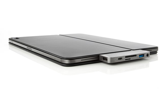 このようなコンパクトなデザインや安定感を高めた設計は、HyperDriveをiPad Proに挿したまま持ち運べることも可能にします。