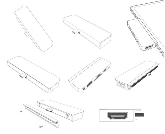 iPad Pro 2018専用6in1 USB-C Hub本体、取扱説明書