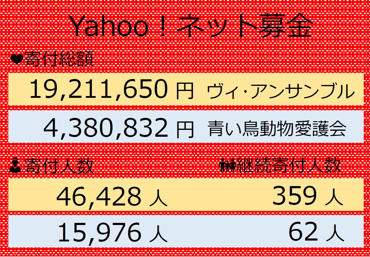 ヴィ・アンサンブルも青い鳥もYahoo!ネット募金に登録していますが、寄付総額/寄付人数/継続寄付人数を比較表すると、青い鳥はヴィの数分の1しかありません。