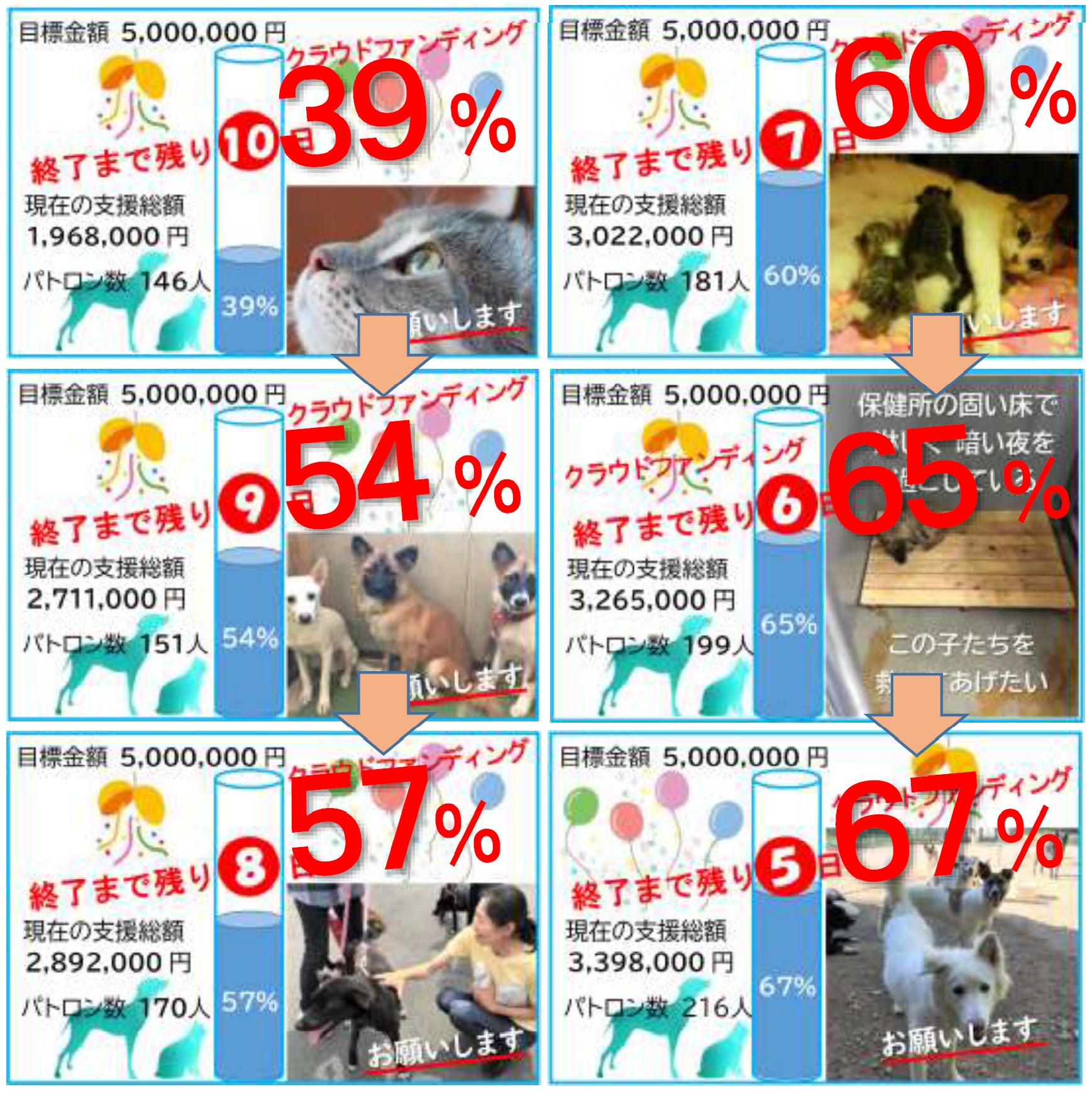 これでは目標額の50%にも届かないかも知れない。80匹の犬たち、80匹の猫たちの顔が浮かんで、「ごめんね」と意気消沈していました。そうして日が過ぎ残すところ11日となった時に、ブログで最終日までのカウントダウンをすると同時に、フェースブックやインスタグラムにもカウントダウンの絵を載せました。達成率はわずか38%でした。