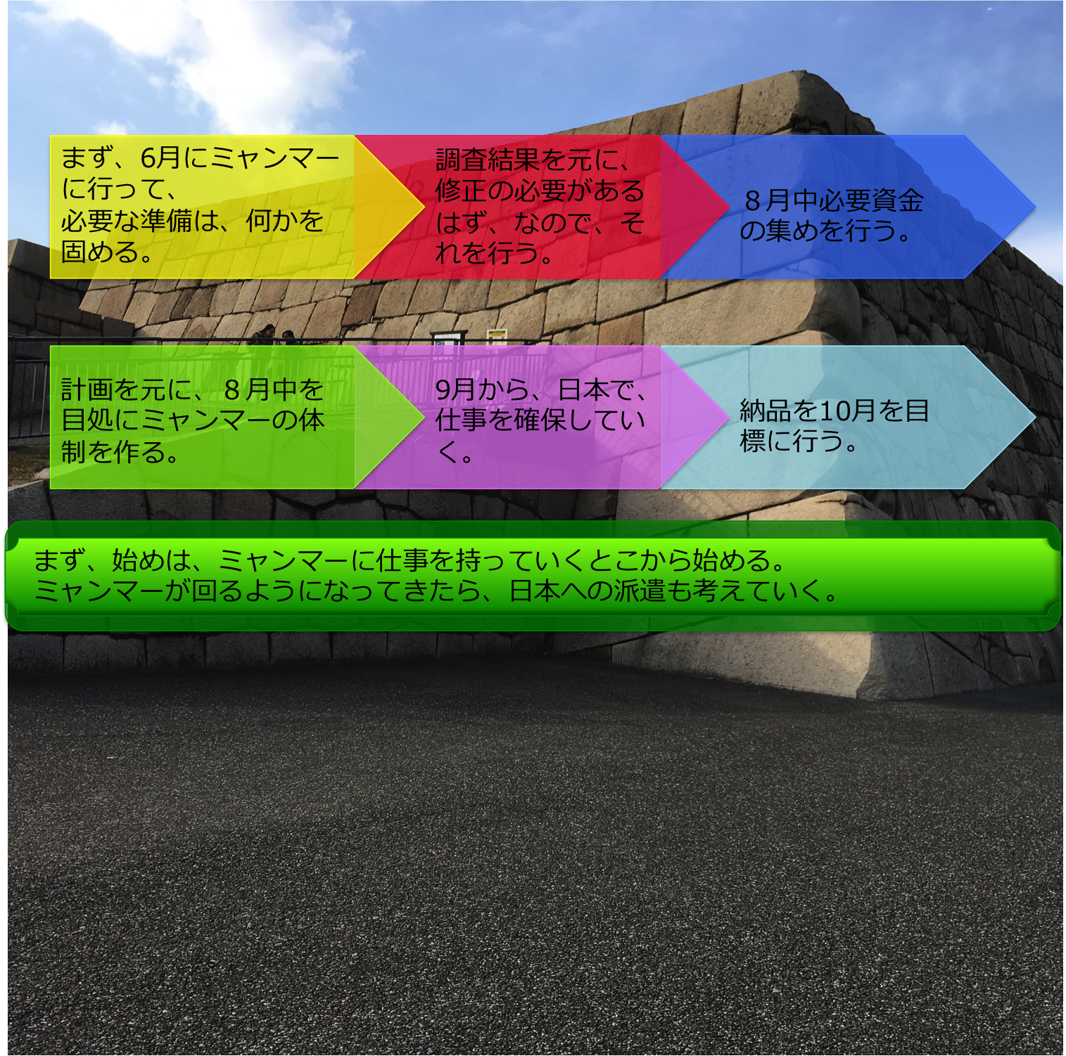 で、最初に、ミャンマーで、仕組みを作りたいと考えています。