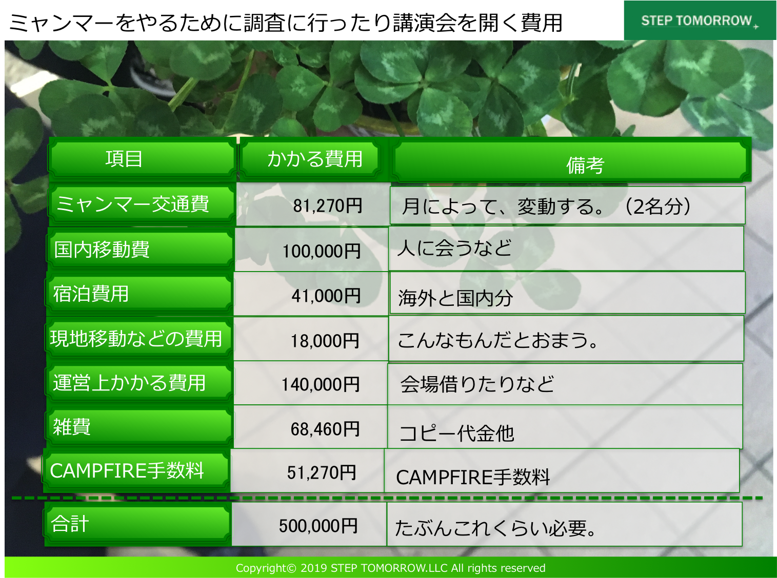 こんにちは。STEP TOMORROWです。