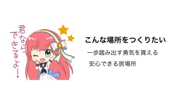 そして全ての人に一歩踏み出す勇気と帰ってこれる居場所を提供したいと考えている。