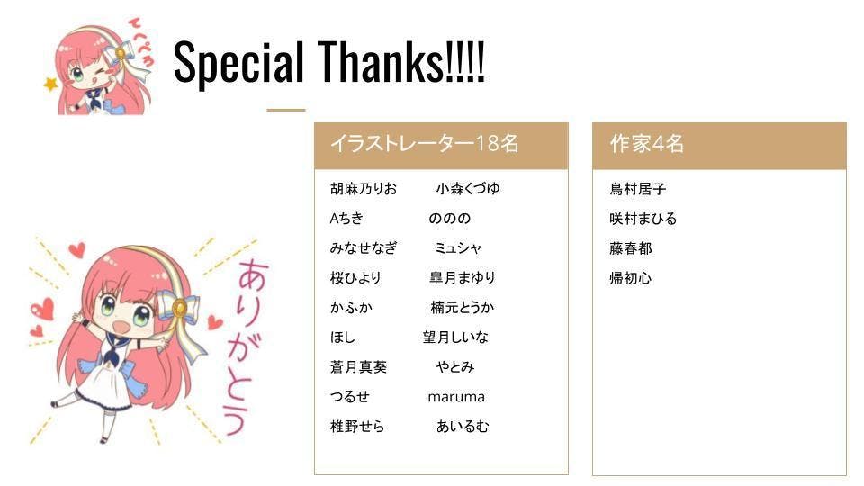素敵なキャラクターや物語を提供してくださる、イラストレーターや作家のみなさん。