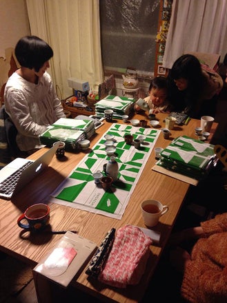 昨晩、日本のメンバーでドイツ出発前、日本国内での最終ミーティングを行ないました。 ドイツ展ではどんな作品を今考えているのかそれぞれ話し合ったり、スカイプを通じてドイツメンバーから会場のことを聞いたり、ドイツでの滞在の際のプチお得情報を交換しあったり、とても充実した打合せになりました。 また、7,000円以上のご支援をいただいた方にお送りする予定のリターンにあるドイツ限定版の手ぬぐいが出来上がりました。日本展の時は秋の空のような青色でしたが、ドイツ展ではドイツの豊かな自然を思わせるさわやかな緑!日本で手に入れられるのは、キャンプファイヤーを通じてのみ!!ぜひ、皆さまにも手にしていただきあい一品です。 写真は、その手ぬぐいの写真とあわせ、ドイツに持っていくお土産のおちょこや徳利。※もちろん、ONGAESHIのアイドルが手にしている徳利は空っぽです! 募集終了まで、残り10日! ぜひ、皆さまご支援お願いいたします。