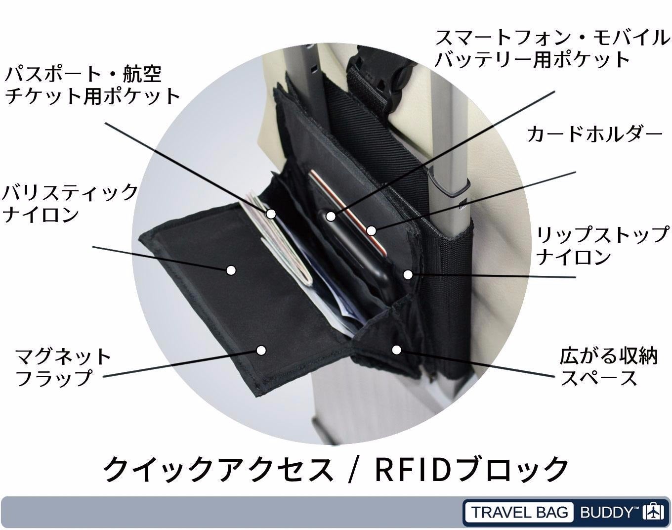 「Travel Bag Buddy」はアクセス抜群のポケットがあるため、これまでに経験した心配なシーンとはもうさようなら。必要な時にスマートにサッと取り出すことができます!また開閉もマグネット式で非常に簡単です。