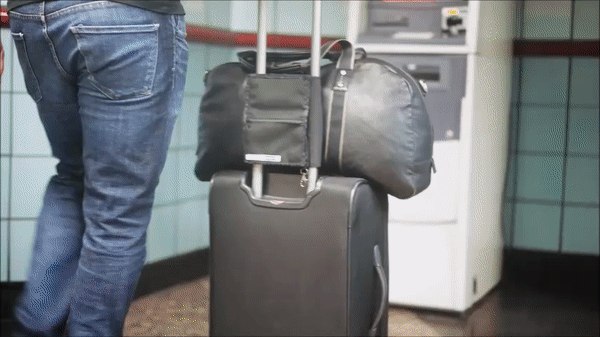 空港のセキュリティーの際もこの動画の通り、「Travel Bag Buddy」をセカンドバッグに取り付けたまま、簡単にスーツケースから外すことができます。セキュリティーチェックをパスした後、また簡単にスーツケースに取り付けることができます。