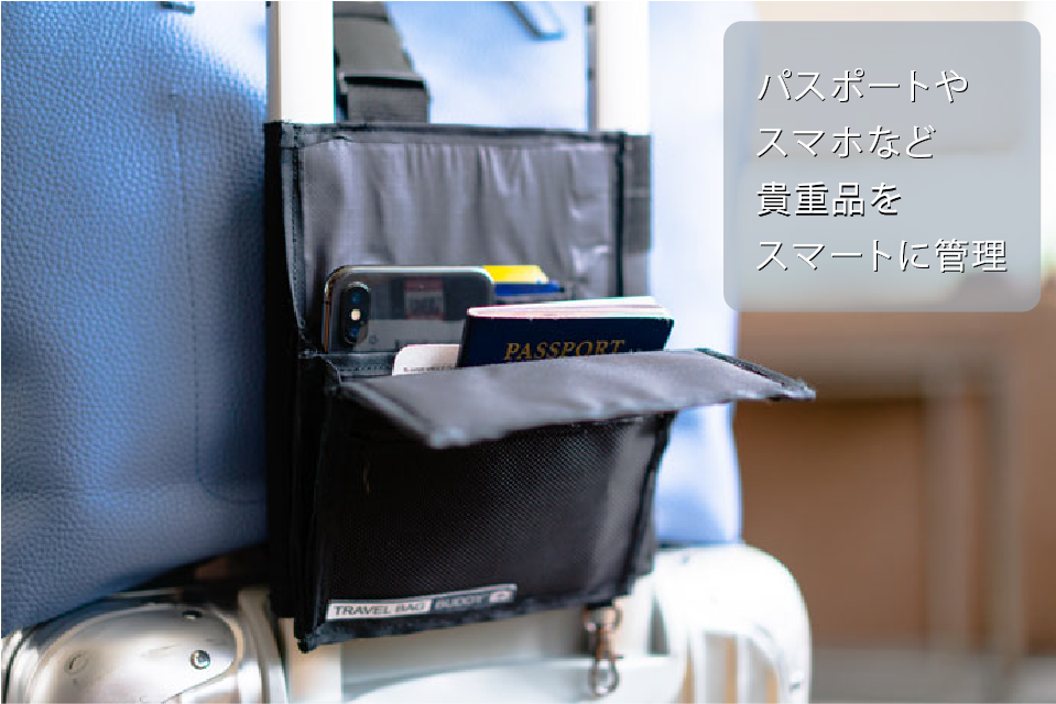 「Travel Bag Buddy」には、すぐに取り出せる必要がある貴重品やアイテムを入れることができます。