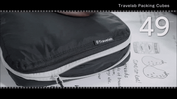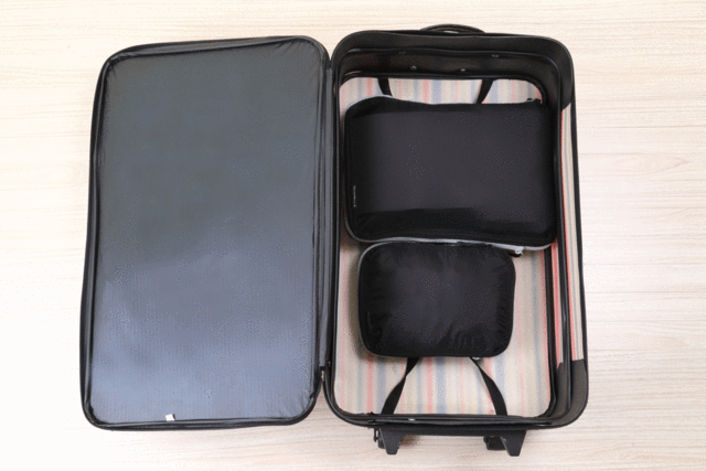 トラべラブ圧縮バッグに衣類を入れた後、圧縮ジッパーを閉めることでスーツケース内の衣類スペースを最大約50%節約することが可能。スーツケース内の衣類スペースを半分にしてスッキリすること間違いなしい上、旅先で買ったお土産やその他荷物を入れるスペースを確保することができます。