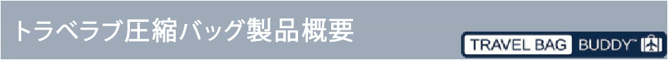今回、Travel Bag Buddyに興味を持って頂いた皆様に、Travel Bag Buddyと相性の良い「トラべラブ圧縮バッグ」についてもご紹介させて頂きます。この二つの組み合わせで、みなさんの出張&旅行は、よりストレスフリーになること間違い無し!