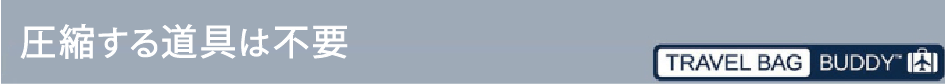 トラべラブ圧縮バッグの場合、そのような圧縮デバイスは一切不要!ジッパーを閉めて圧縮するだけなので非常に簡単で手軽にスペースを節約することができます。