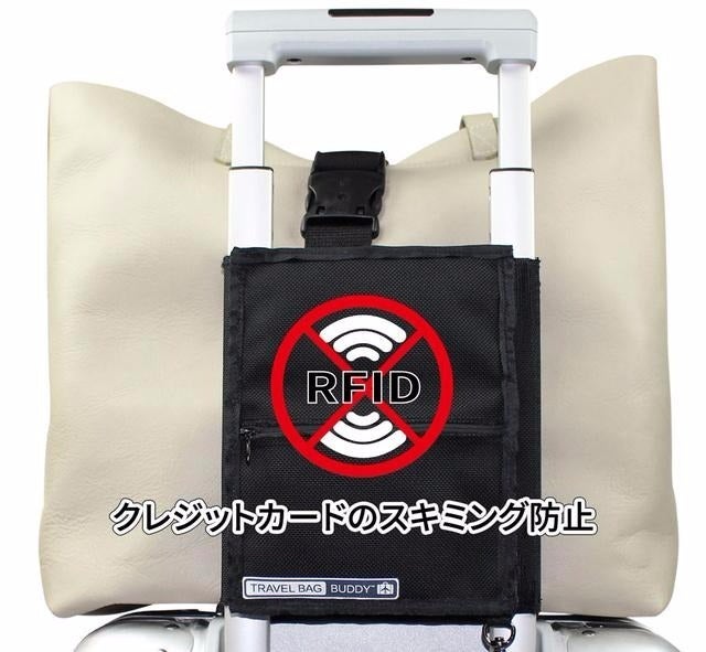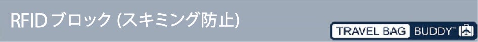 「Travel Bag Buddy」全体にRFIDブロックが施されており、スキミングを防止します。中に収納しているクレジットカードの重要な個人情報をしっかり守ります。