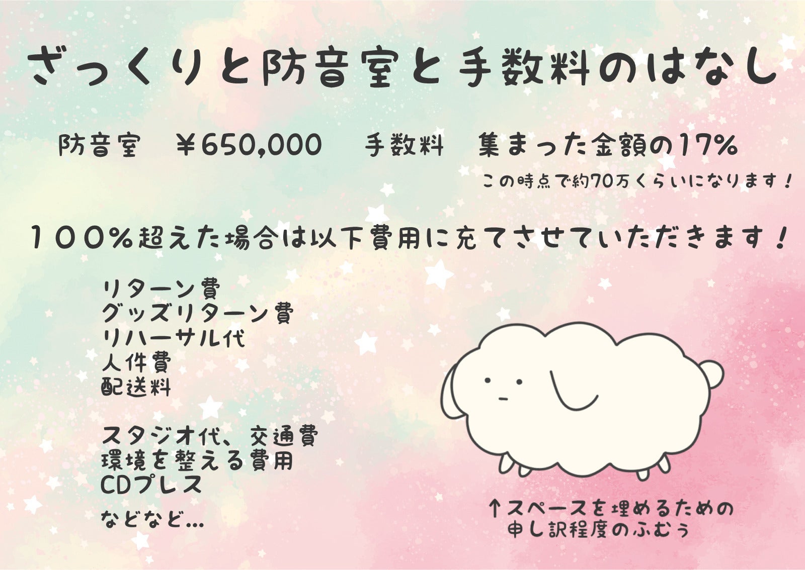 という内容が多く、今後の活動に必要な防音室を買うための費用に充てるクラウドファンディングでは何を返せるのか…。