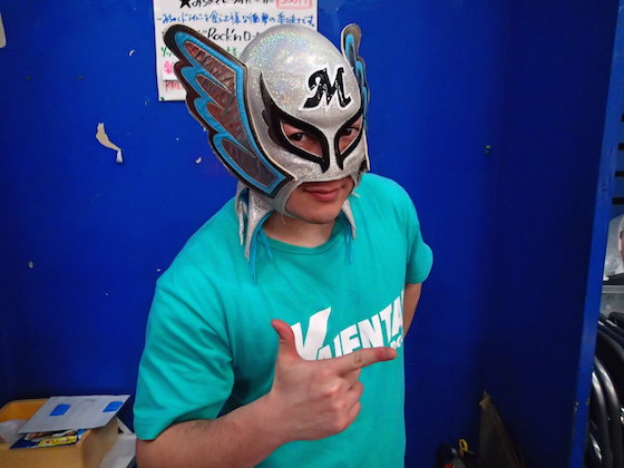 洞口選手、そして取材に快諾いただいたTAKAみちのく選手、本当にありがとうございます!ちなみに、KAIENTAI DOJOにはご当地球団 千葉ロッテマリーンズ応援レスラー「マリーンズマスク選手」もいらっしゃるのです!まさにご当地愛!
