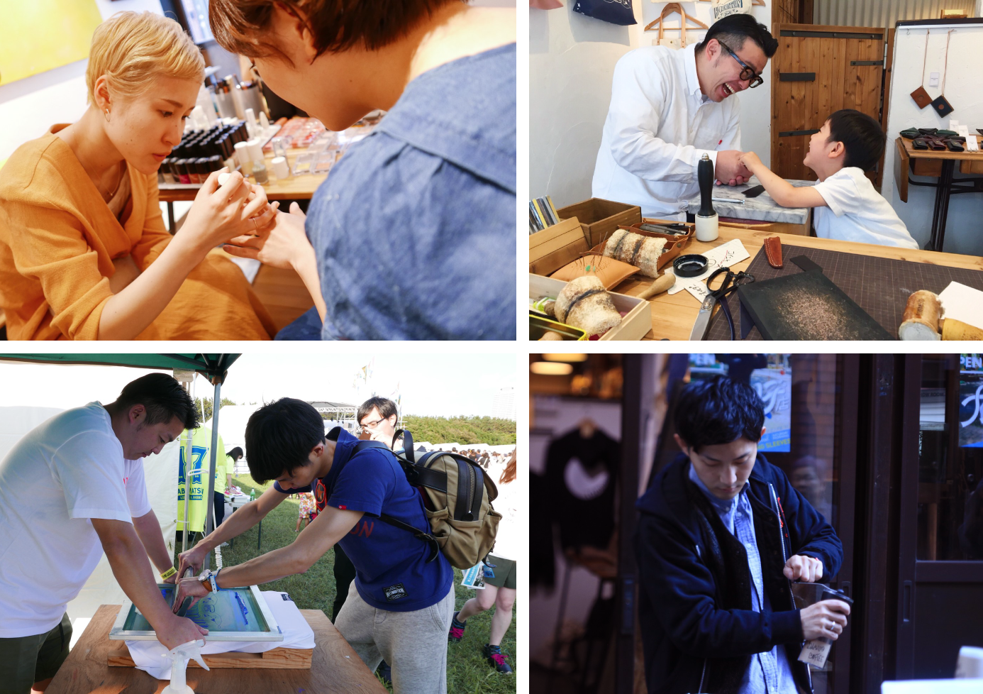 シルクスクリーンを用いたTシャツ制作、バリスタを招いた出張コーヒースタンド、スタイリストのヘアアレンジ体験、メイクアップアーティストのメイク教室等、多様なものづくりをワークショップという形で展開してきました。