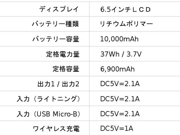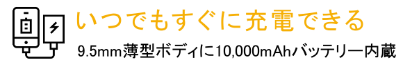 ②大容量10,000mAhバッテリー