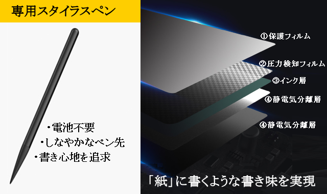 LCDディスプレイ上に、紙と同じ様な書き心地を再現。