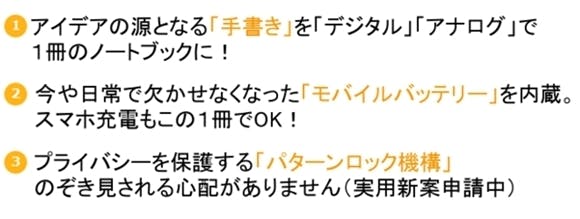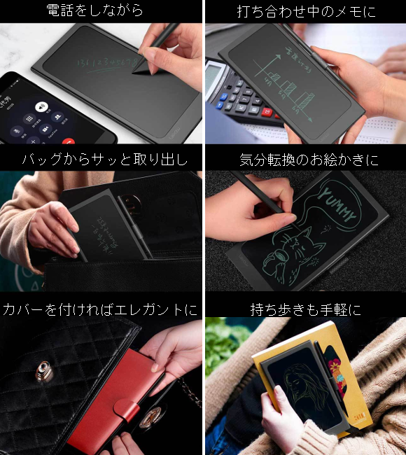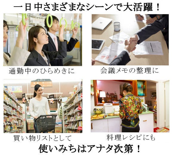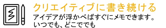 「コンパクトなスマホサイズ。自分が思い描いた通りに、いつでもどこでもメモができる、便利で効率的なアイテム」