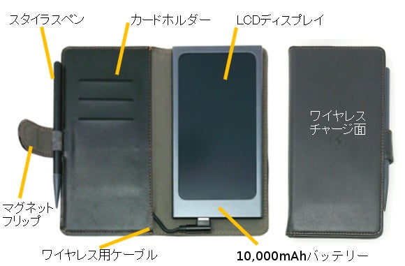 電子メモ+パワーバンク+ワイヤレス充電+カードホルダー