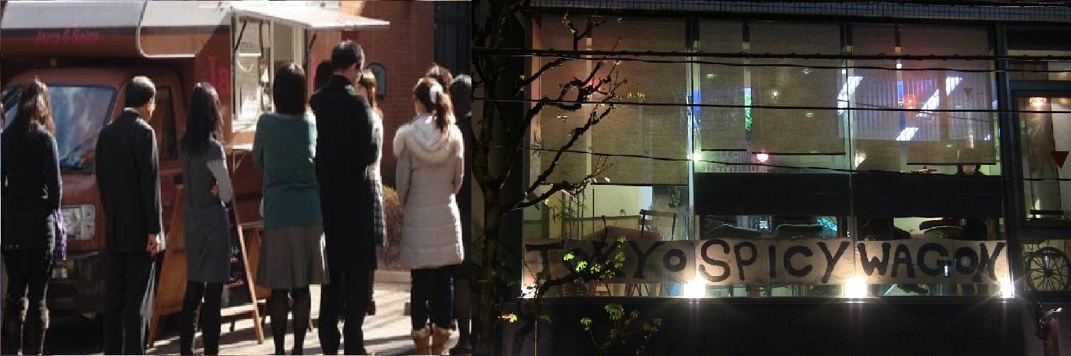 フードトラック「Jazzy&Spicy」'06(左)麹町店舗「東京スパイシーワゴン」’14(右)どちらも毎日行列が出来るほど大変ご好評を頂きました。<よりこだわって、追求したくて研究の日々へ>