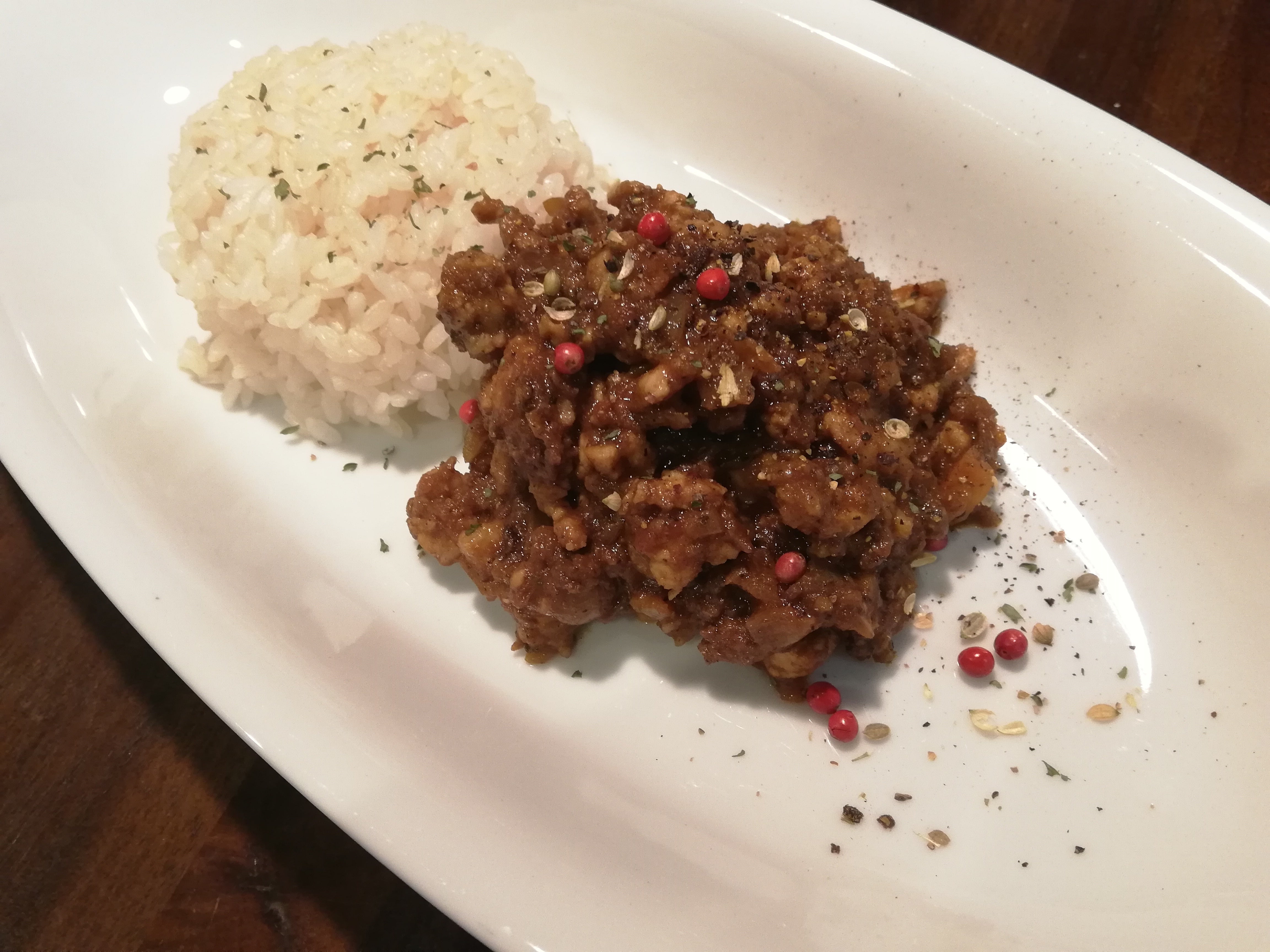 ミートソースもスパイスは使います。セントラルキッチンとして合同でやっているからこそ、でしょう。本来はやらないような手間ですが、このミートソースにも上記の炒め玉ねぎは使用されております。これはまず家庭ではやってられないですよね。さらにミートソース用にいくつかスパイスを使ってます。これもスパイスによってホールを直前に挽いて投入してます。全料理について言えることですが、まさに当店の「命のソース」です。