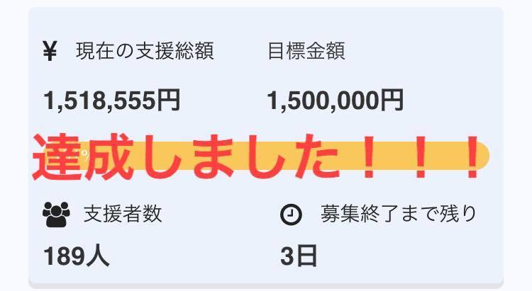 【達成の御礼】5/22に目標の150万を達成しました。ネクストゴールに向けて