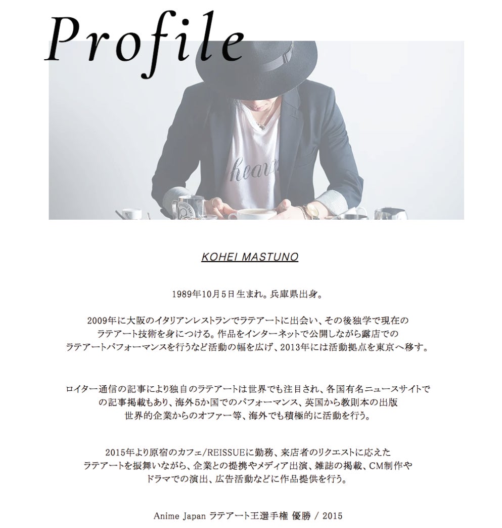 元々は大阪のイタリアンレストランで始まったちょっとしたサービスでしたが、そこから技を磨き、様々なイベントやメディアへの出演、ロイター通信から取材もあり世界からも注目され、国内外企業とのコラボレーション、海外6カ国でのパフォーマンス、ドラマやCMでのラテアート提供、2015年アニメラテアート王選手権優勝など、ラテアートを通して色んな体験をしました。