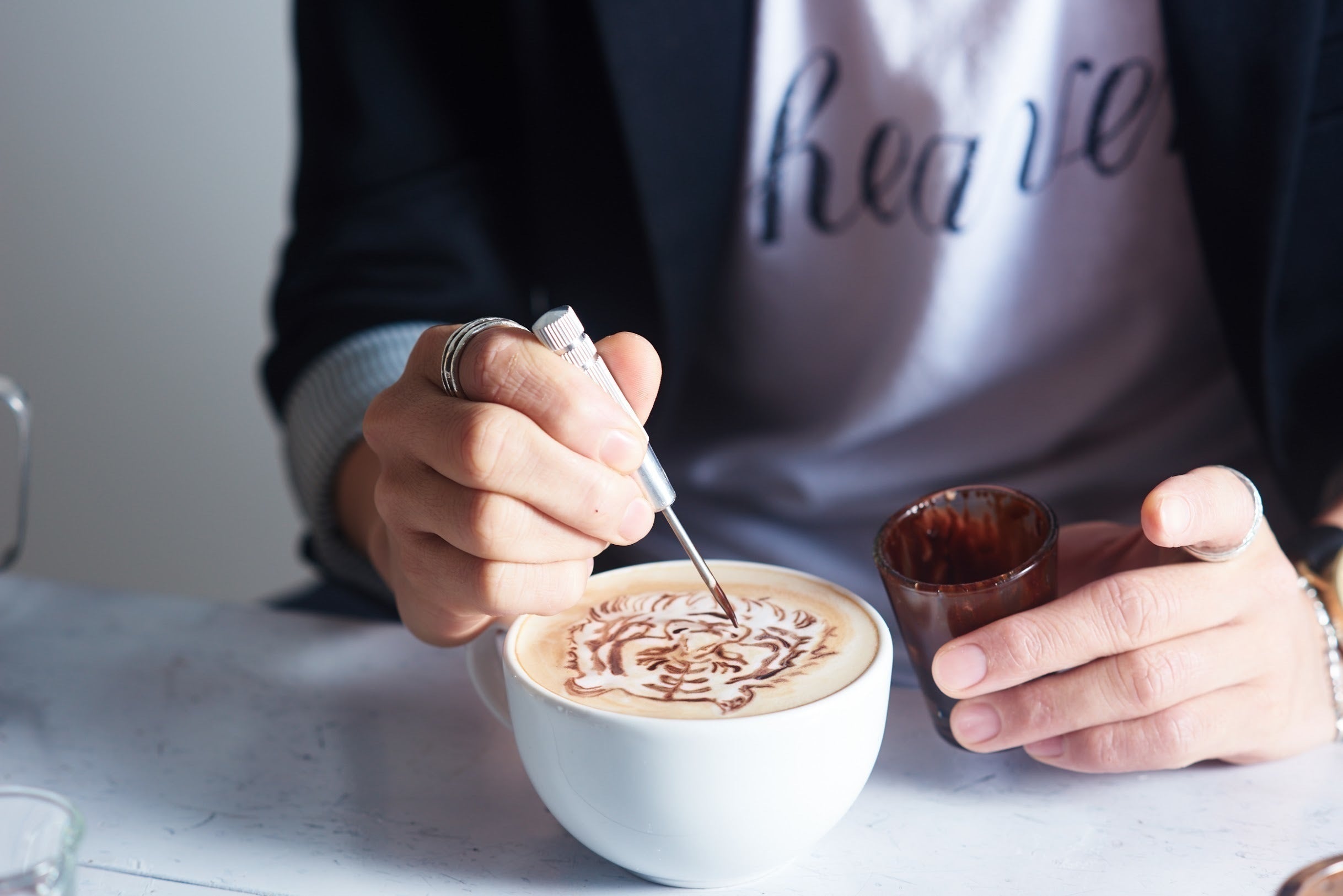 通常の葉っぱやハートだけではなく、その人の好きなもの、大切なもの、似顔絵まで何でも描くラテアートは様々な場面で喜ばれます。
