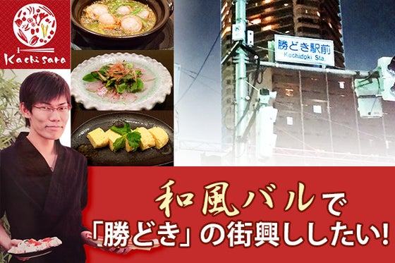 今、僕は「勝どき」を利用される皆様が街を気軽に楽しめる、 『KACHIDOKI ENJOY FEEL-FREE PROJECT』に取り組んでいます。 勝どきは以前からオフィスが多く、また最近では住宅が増え始めています。 そこに、勝どきの皆様が楽しく交流できる場所が提供できたらと思い、気軽に利用できるバルスタイルを取り入れた和風の店舗を作ることに決めました。 また、お店で提供する食材やお酒の生産元へ皆様と一緒に見学に行ったり、 街興しになるイベントを企画し皆様に楽しんでいただいたり、地域の方々と食を通じた楽しい交流も出来ればと考えています。 ご支援金に関しては、街を彩る入口部分の装飾費、美味しい料理を作る厨房機器に使わせて頂ければと思います。お店の情報についてはフェイスブックページで更新しています。ご支援の程をよろしくお願いします。