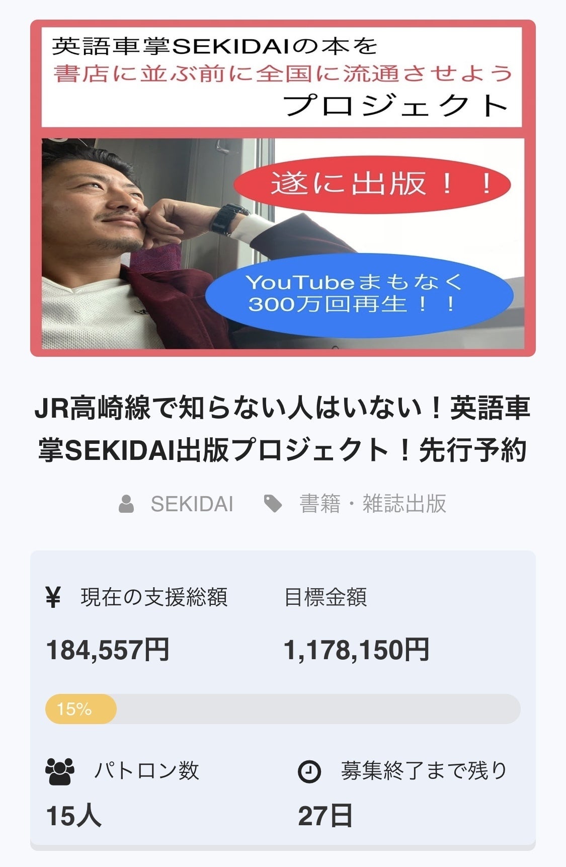 2019/05/07 09:04おはようございます!英語車掌SEKIDAIです!おかげさまで、サイン入り書籍予約権のシリアルナンバー11〜20が売り切れました!これも皆さまのおかげです。本当にありがとうございます。皆さまからいただいたエールを僕の力に変えて、また突き進んでいきたいと思います。今後ともよろしくお願いいたします。英語車掌SEKIDAI もっと見る