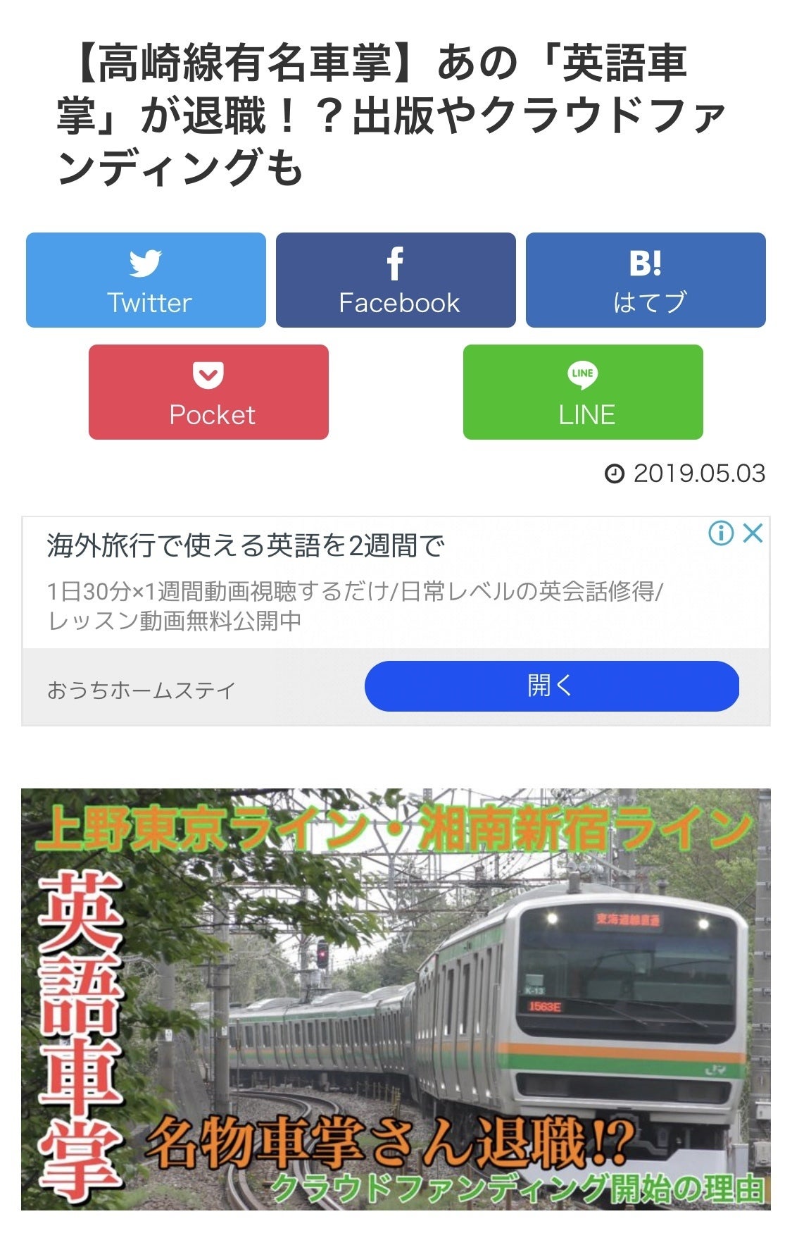 こんにちは!英語車掌SEKIDAIです!本日からスタートした、出版プロジェクトのクラウドファンディングですが、早速メディアに取り上げていただき記事になっております!!よかったらご覧ください。僕のブログの紹介などなど、色々書いていただいております^_^♬https://train-fan.com/unei-shakaikoken/