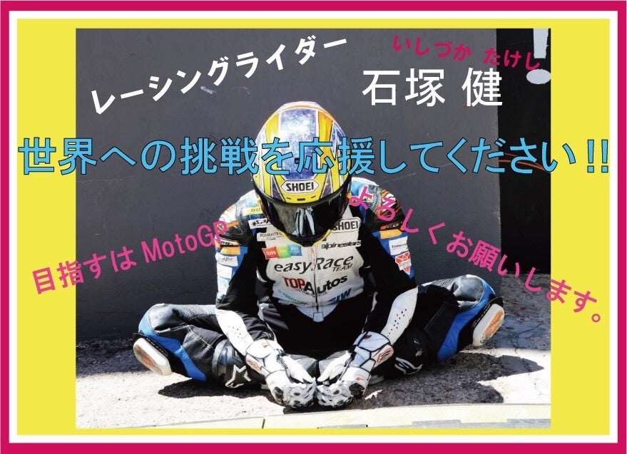 2019/05/31 21:46こんばんは!ご支援いただいている皆様、ありがとうございます。今回は新たなリターンを追加いたしましたのでお知らせいたします!一つ目が、【サイン入りポストカード3枚セット】です。3枚全てにサイン入れちゃいますよ~♪ポストカードなどコレクターされてる方などにもおすすめです!!次に、8耐参戦が決まったという事で、【8耐時使用、サイン入りスライダーとシールド】も追加させていただきました!こちらは数に限りがありますので、ご興味のある方はお早めにお願いいたします!そしてもう一つは、【8耐スペシャルスポンサー】を募集させていただきます。内容は公開中のクラウドファンディングサイトをご覧ください!それでは、引き続き応援をよろしくお願いします!!石塚 健クラウドファンディングサイト↓https://camp-fire.jp/projects/view/149415石塚健オフィシャルサイト↓https://takeshi-ishizuka.com/ もっと見る