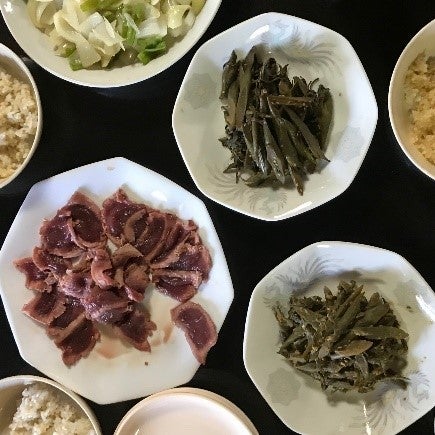 2017年から「星降る古民家」のある反原集落を中心に揖斐川町内で、保存食の食材とレシピの調査をスタートし、同年11月に地域の女性たちを先生に7種類の保存食メニューを試作・試食するワークショップを行いました。2018年には里山SUNDAYSという月例クラブ活動の中で、お昼ご飯に必ず保存食メニューを入れて皆で作って楽しんできました(10回実施)。2019年1月には「旧徳山村の冬の暮らしと保存食」をテーマに特別講座を開催し、皆で保存食の調理実習と自給自足的な山の暮らしにお話を伺いました。