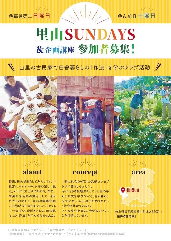2018年春からスタート。毎月第2日曜日(原則)に「星降る古民家」に集まって、野良仕事(里山整備や農作業)、古民家の手入れ(と改修)、保存食を用いた昼ご飯づくりを楽しむ週末の里山クラブ活動です(単発参加からどなたでもどうぞ)。ゆるい活動の中で、田舎暮らしを志向する人々のコミュニティが生まれ、暮らしの技術や人間関係(地域の作法)も体験的に学んでいく活動を続けています。