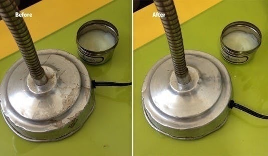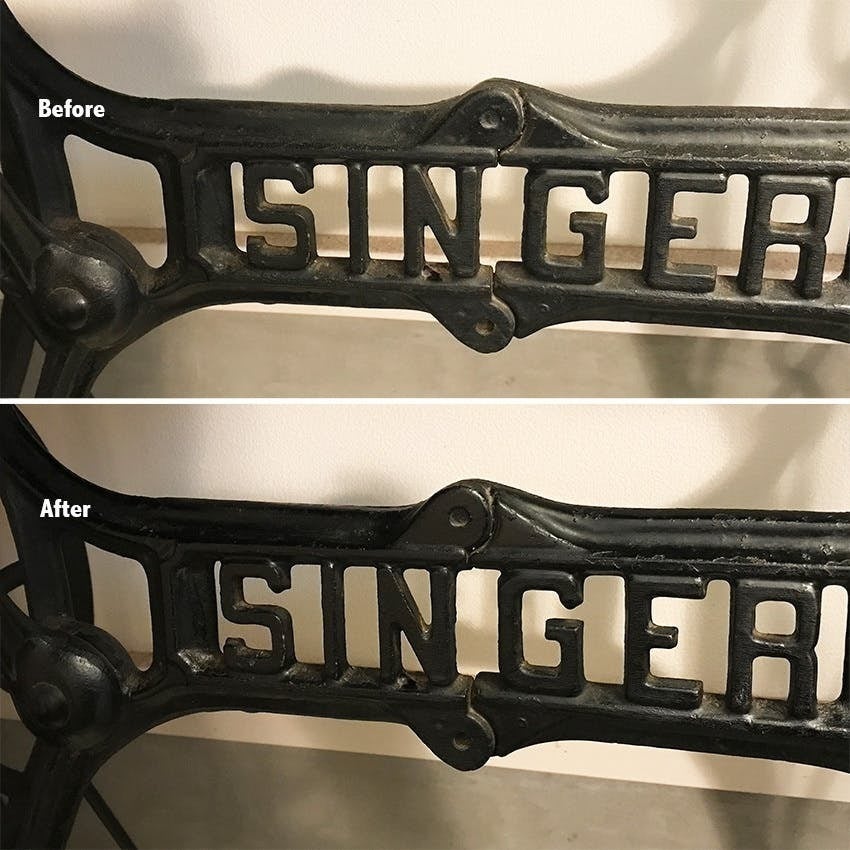 仕事に使っている足踏みミシンの脚部分。水拭きだとサビが心配な鋳物の製品やアンティーク家具のクリーニング、コーティングにも。