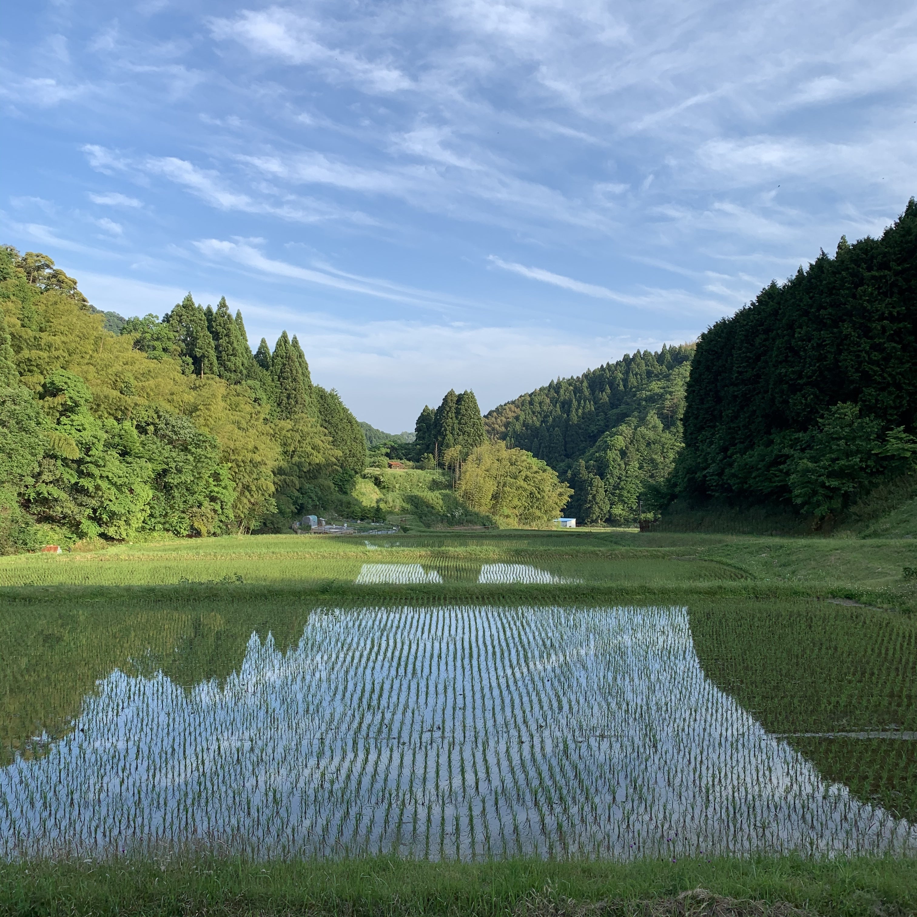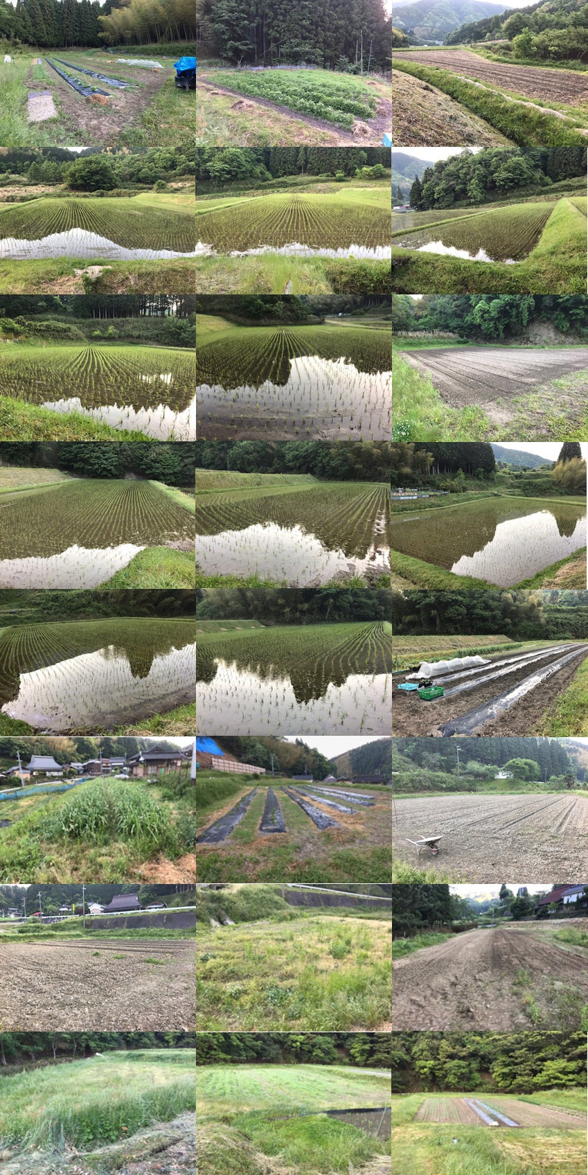 MCR米をはじめ現在、海老芋・春ウコン・しょうが・キクイモ・ジャガイモ・さつまいも・ニンニク・らっきょ・ヤーコン・山フキ・春大根・きゅうり・ミニトマト・ナス・唐辛子(鷹の爪)・宇宙芋・ニラ・ごぼう・ねぎ・などを栽培中。カボチャ・オクラ・味噌用大豆・落花生は、もうすぐ定植。昨年の度重なる豪雨や台風で崩れたままの田んぼ、その災害復旧の通路に使われるので今年は作るのを諦めた畑、緑肥を育てて鋤きこみ健康な土づくり真っ最中の畑もあります。