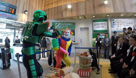 銚子と日本の平和を守るため悪と戦う銚電神「ゴーガッシャー」(JR銚子駅での戦闘シーン)