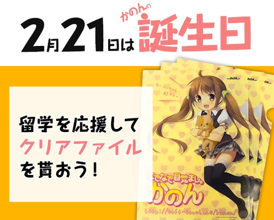 2015/02/20 16:56留学前さいごの誕生日をお祝いしよう! ただいま語学留学用の資金あつめをしている「かのんちゃん」は、2月21日に誕生日を迎えます。 これに合わせて、Twitterで留学を応援してくれたおにーちゃん、おねーちゃんに“逆”誕生日プレゼントを贈るキャンペーンを開始しました。 下記応募ページの中の「ツイート」ボタンからつぶやくと、抽選で50名様にオリジナルクリアファイルがプレゼントされます。 --------------------------------------------------------------- ■応募ページは以下URLから http://soft-touch.me/kanon/birthday_cp.html --------------------------------------------------------------- 留学資金あつめは3月20日まで 現在開始2日目で40万円を超えるご支援があり、順調な滑り出しを見せていますが、まだまだ皆さんの力が必要です!是非、本キャンペーンで「かのん」を応援してあげてください!よろしくお願いいたします。 もっと見る