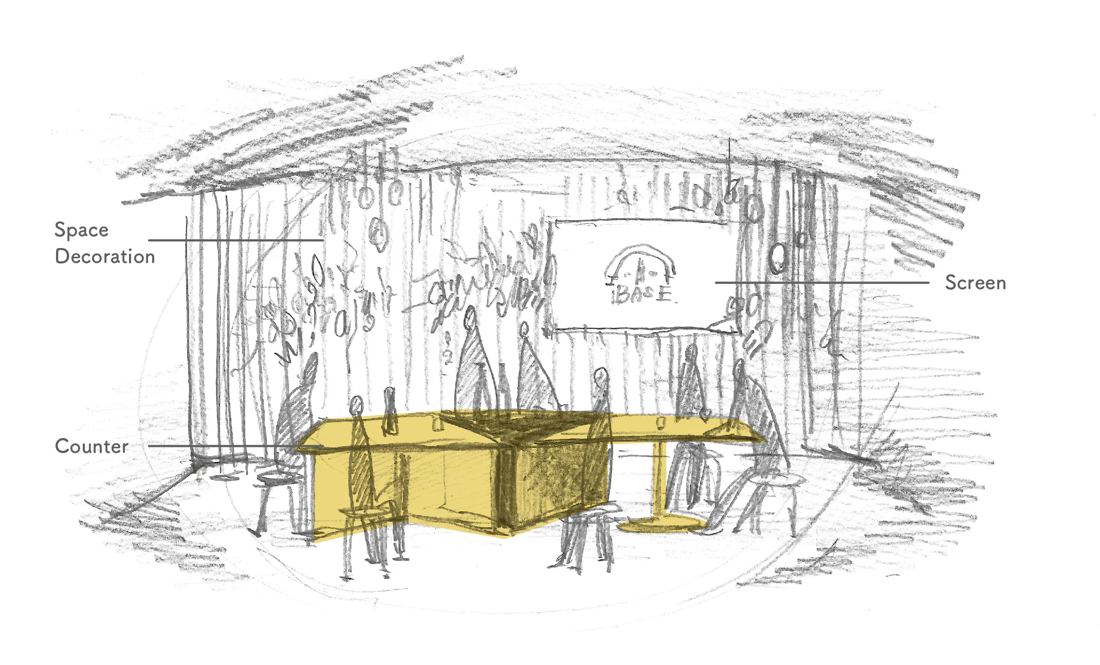 更にちょうどそのとき出会ったのが、CRAZY WEDDINGでアートディレクターをしている五味ちゃん。テーブルカウンターだけではなく内装や照明をもっと世界観が伝わる素敵なものにしようと、何度も何度も議論しながら一緒に新しいかくれ架BASEの空間を描いています。
