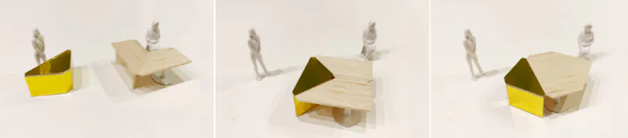 (形を変えられるテーブルカウンターと空間のイメージ)