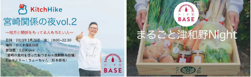 例えば、鹿児島の霧島市をテーマに霧島の食材や焼酎を楽しみながら、また別の日は南伊豆の美味しい干物と日本酒を飲みながら、高知の四万十町の食材を囲みながらで地域の生産者や現地の面白い人たちと一緒に飲むなど。