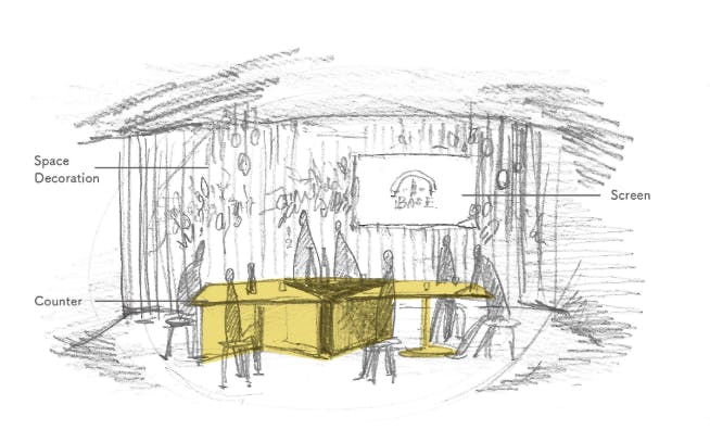 かくれ架BASEのために、3つのテーブルを考えました。ひとつひとつが異なるキャラのテーブルです。キャラが立っているので名前をつけました、キンサン、バッテン、マルアシ。