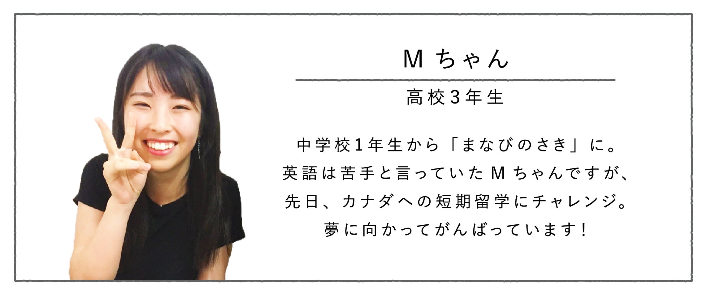 受験期には、精神面共に支えて頂きました。最後まで「Mちゃんなら絶対受かる」と応援し続けて下さった先生方のお陰で自分に自信が持てました。