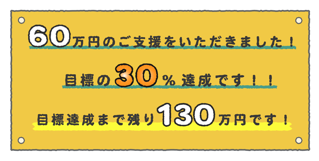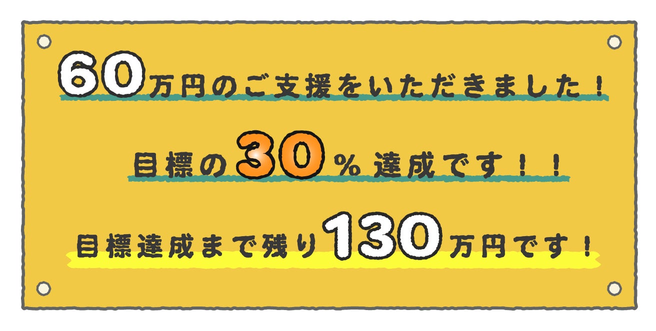 なんと既に目標金額の30%・60万円のご支援をいただきました!