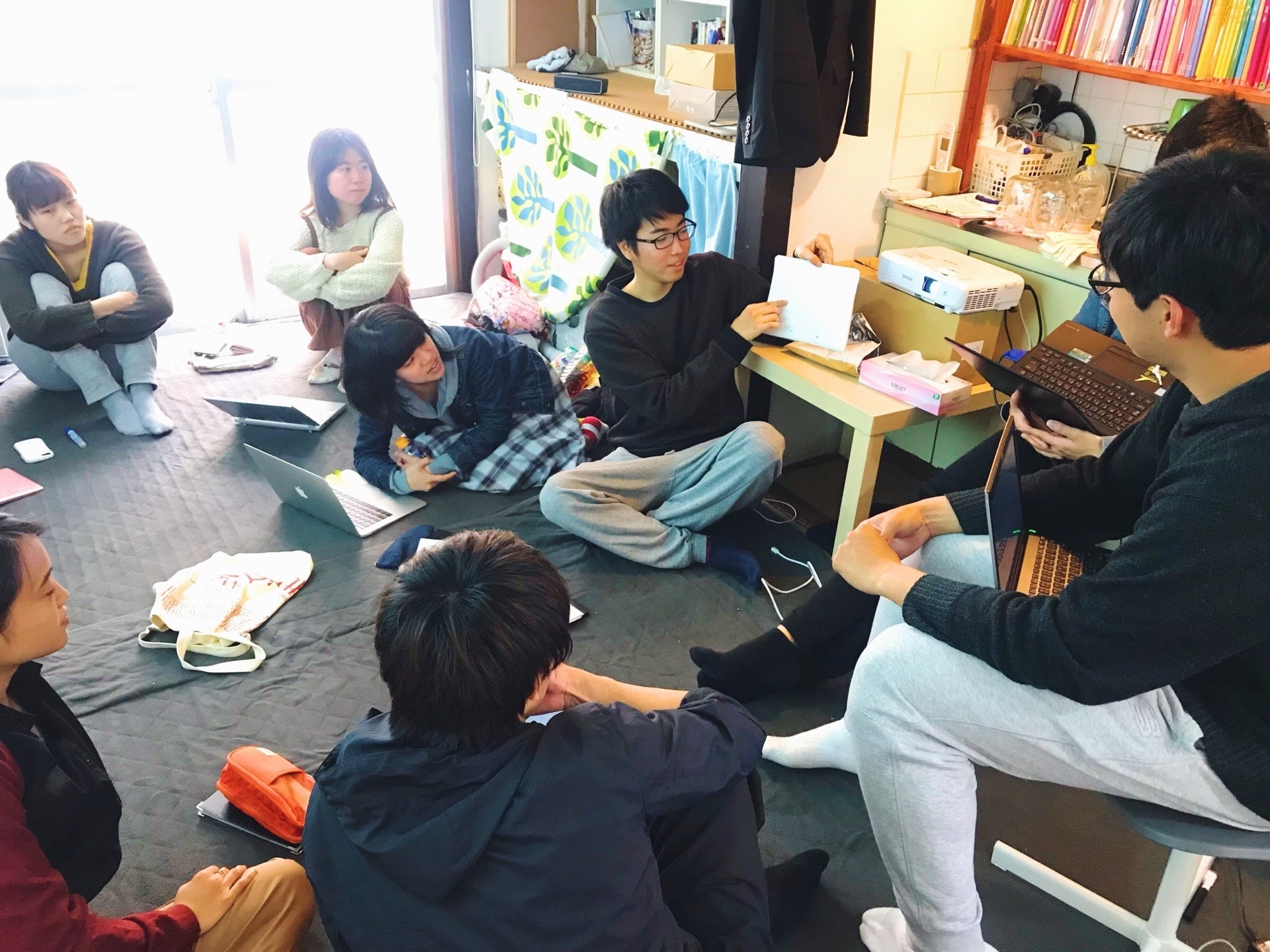 今日の合宿をずっと前から準備しデザインした大学生がファシリテーションをしている