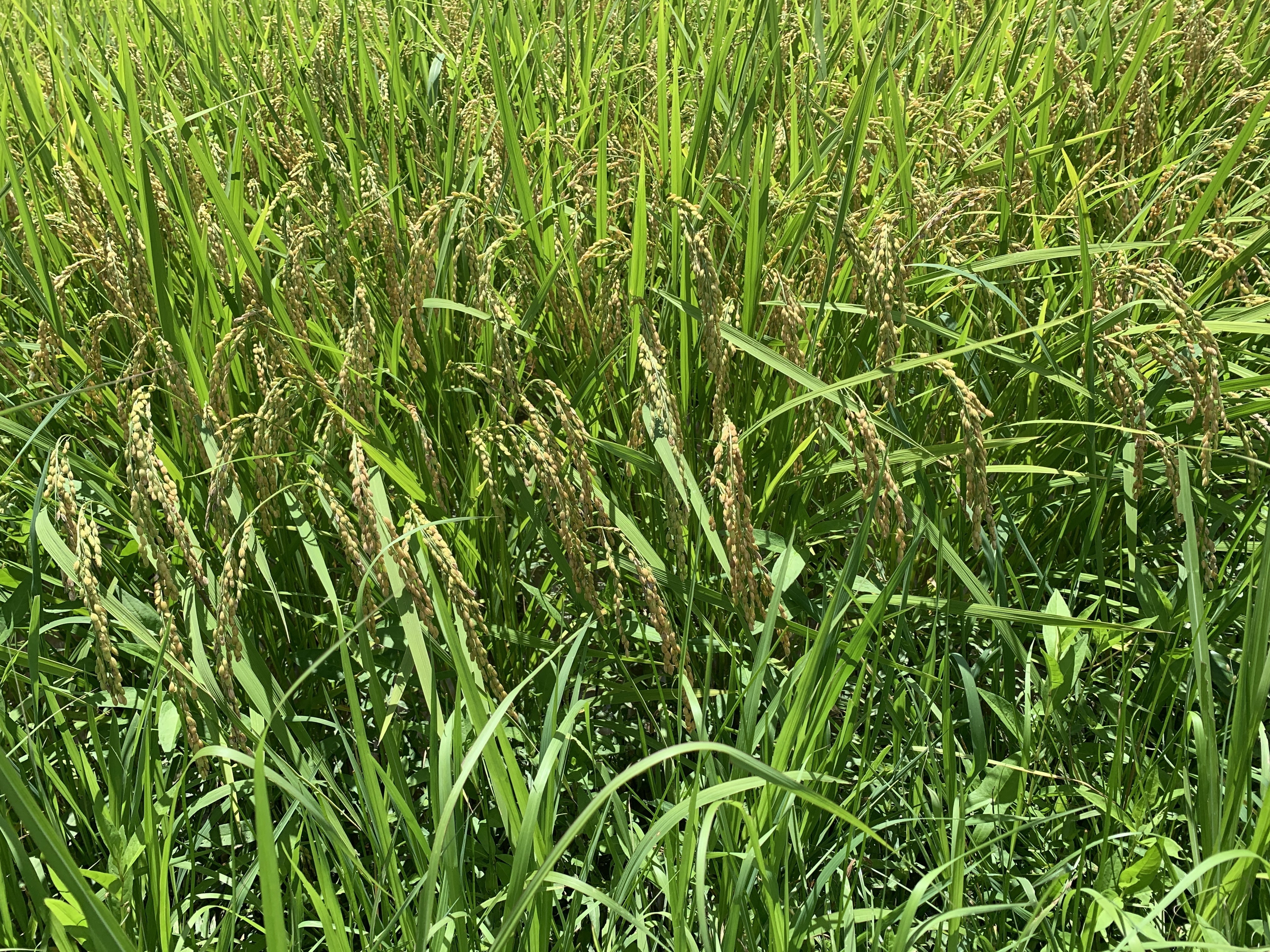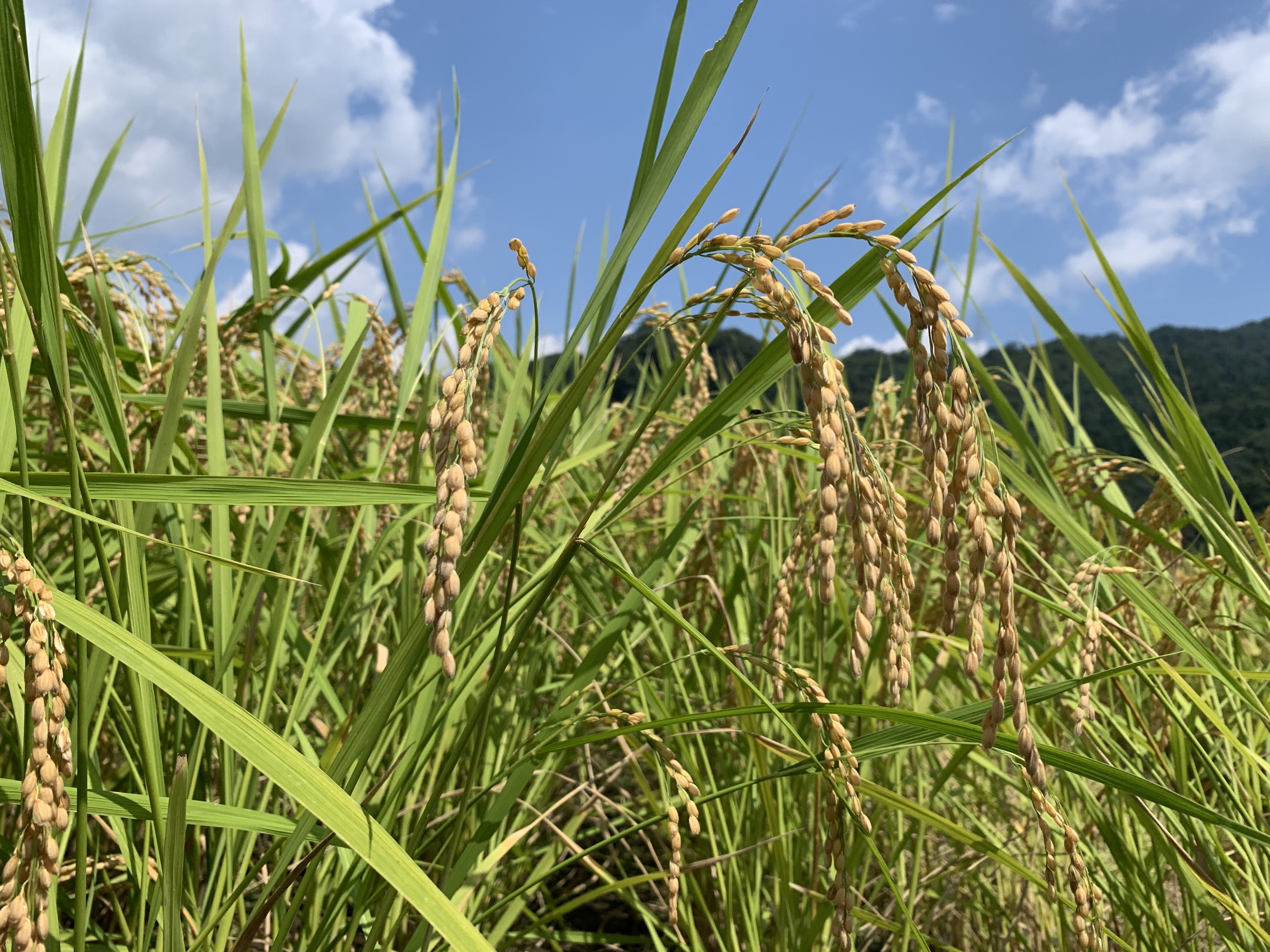 2019/08/15 18:43台風が直撃しております。だんだんと雨が強くなってきていますが、稲はあまり倒れず持ちこたえています。みなさんは大丈夫でしょうか?日々草抜きと草刈りに追われています。周りの田んぼはイノシシ被害で大変なことになっています。うちの田んぼも新しく策を購入し対策していますが、イノシシのパワーはすごいので油断はできません^_^;稲は稲穂ができてきたので、もう少しで稲刈りできそうです。ここまでは順調です。この台風が過ぎたら水止めをして稲刈りの準備をします。雑草もちらほら大きく成長しています^^;稲を刈る前に抜きます。黄金色に色づいてきました。もうすこしで皆様にお届けできると思います(^^) もっと見る募集終了しました(^O^)