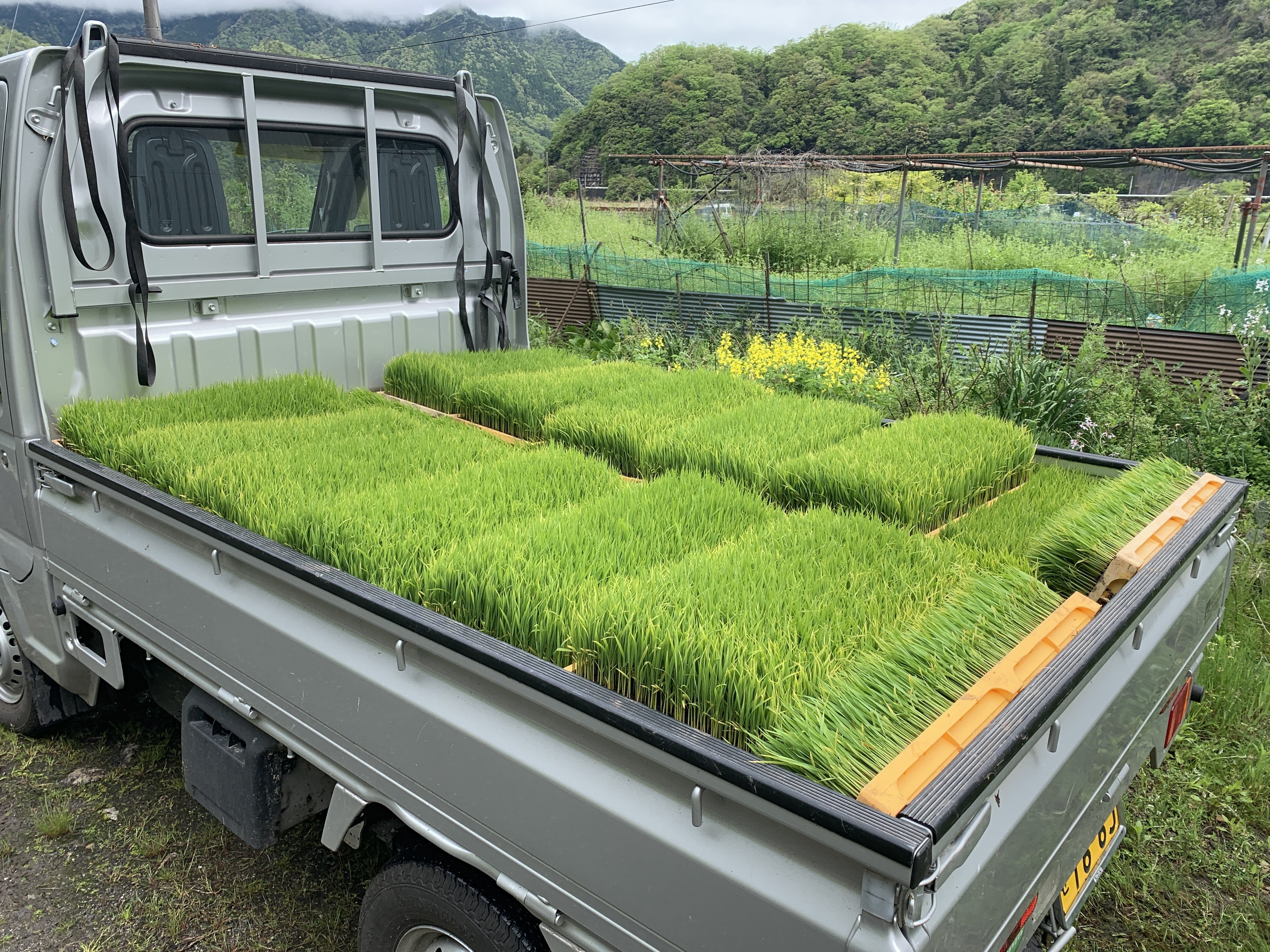 さて、田んぼのことですが、草刈りをし、あらおこしをし、肥料を撒き代かきをし水を張り終えたところ、天候にも恵まれたため、いよいよ平成最後の今日朝から田植えの準備をしています。お昼時の12時からいよいよ田植えです。