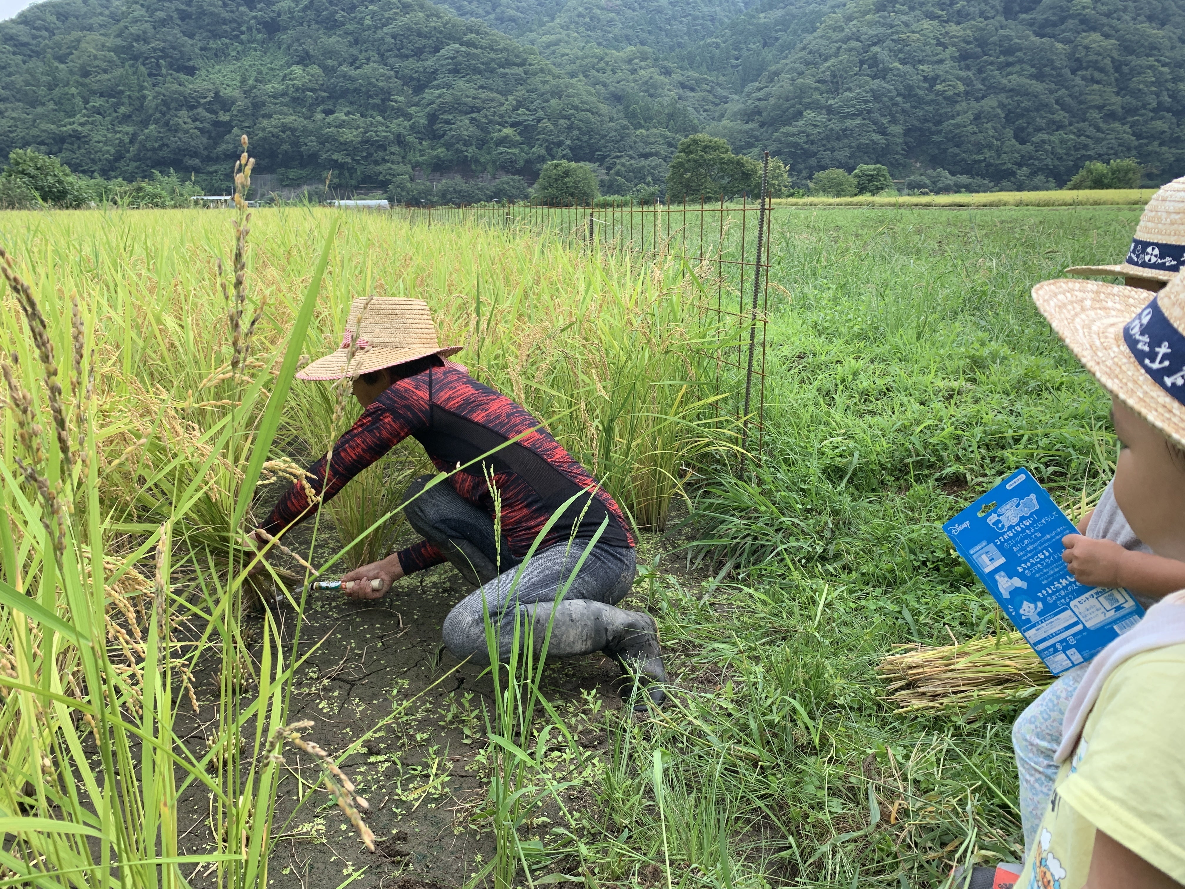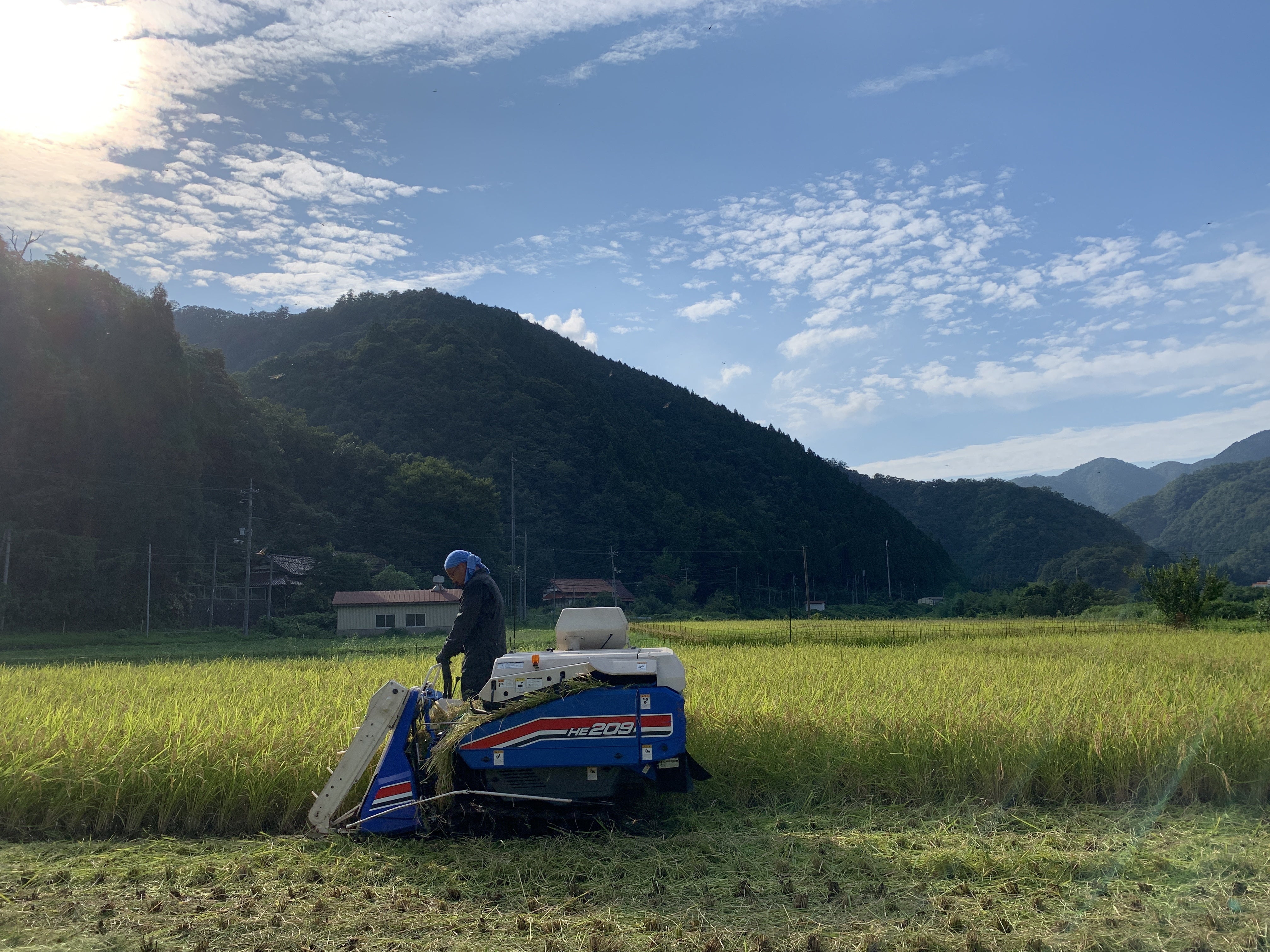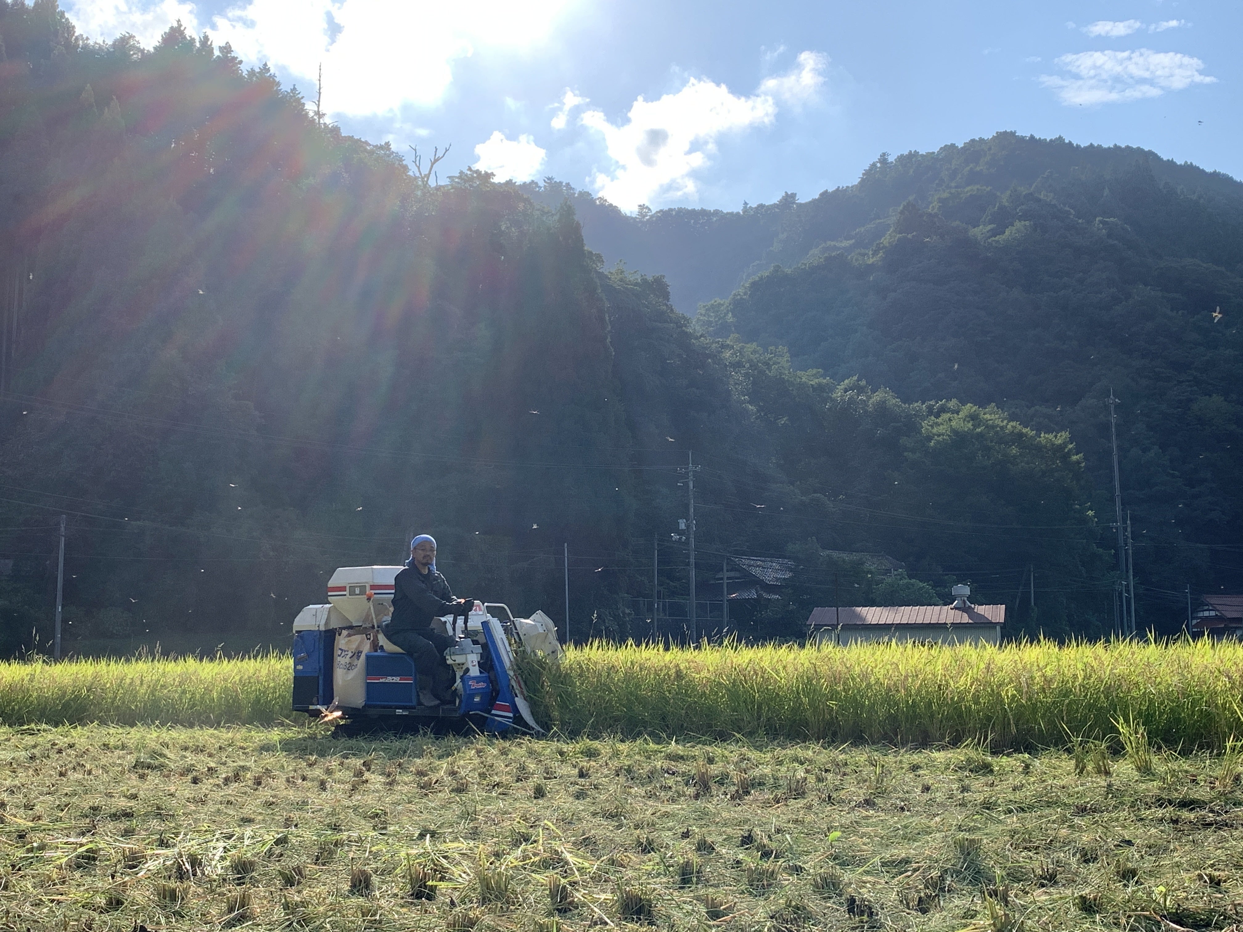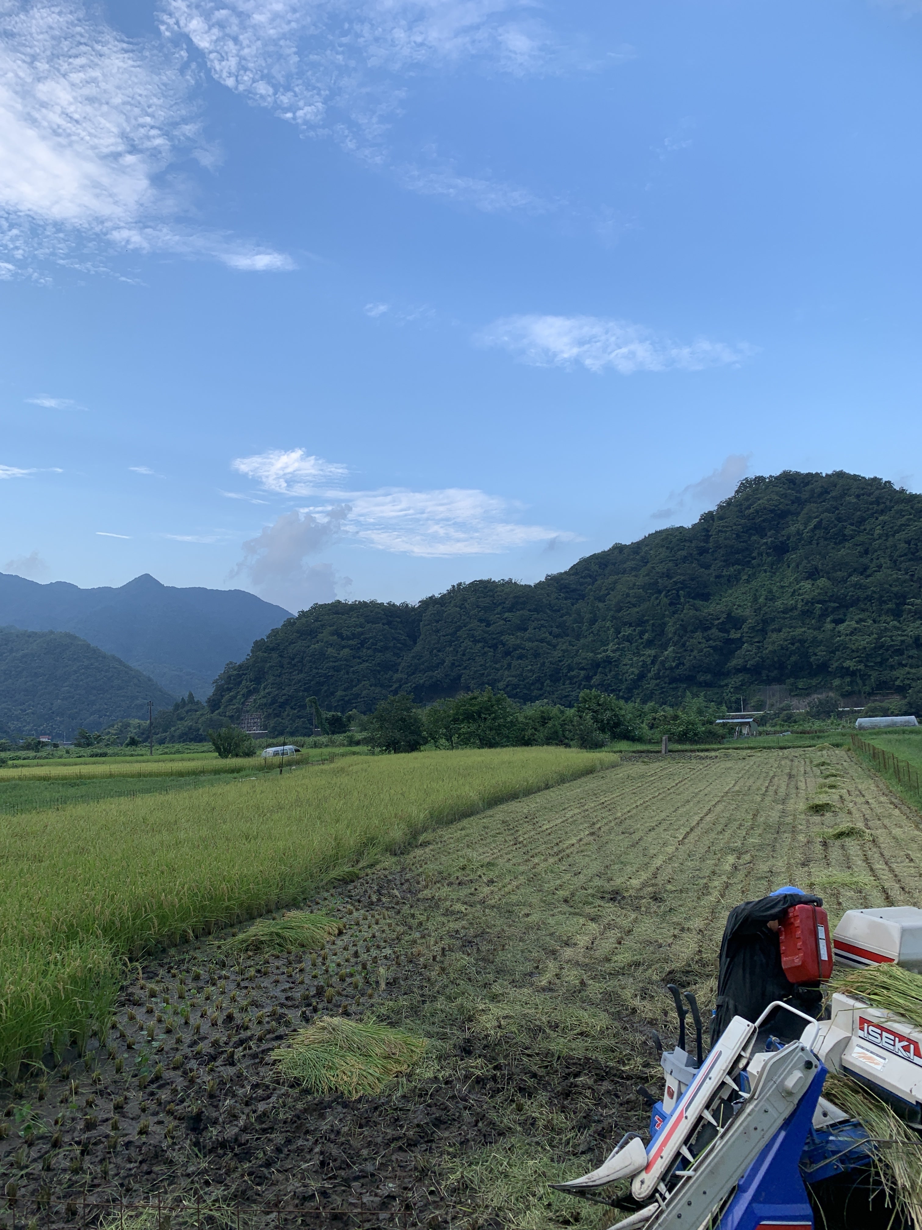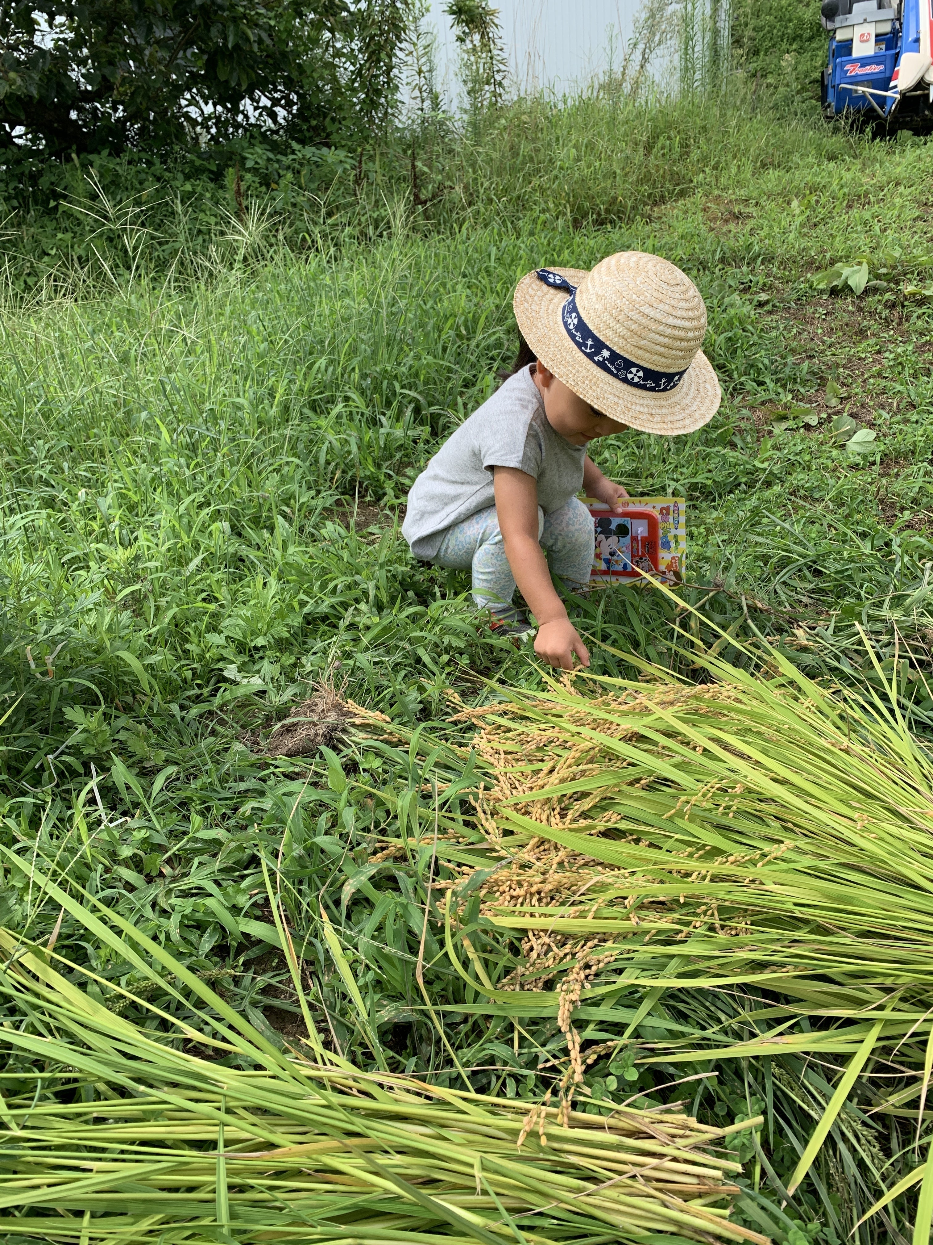 3枚田んぼがあるうちの2枚が水の引きが良く、機械も田んぼに入れるだろうとふみ、今日は2枚の稲刈りを終えるということを目標に朝から稲刈りをスタート