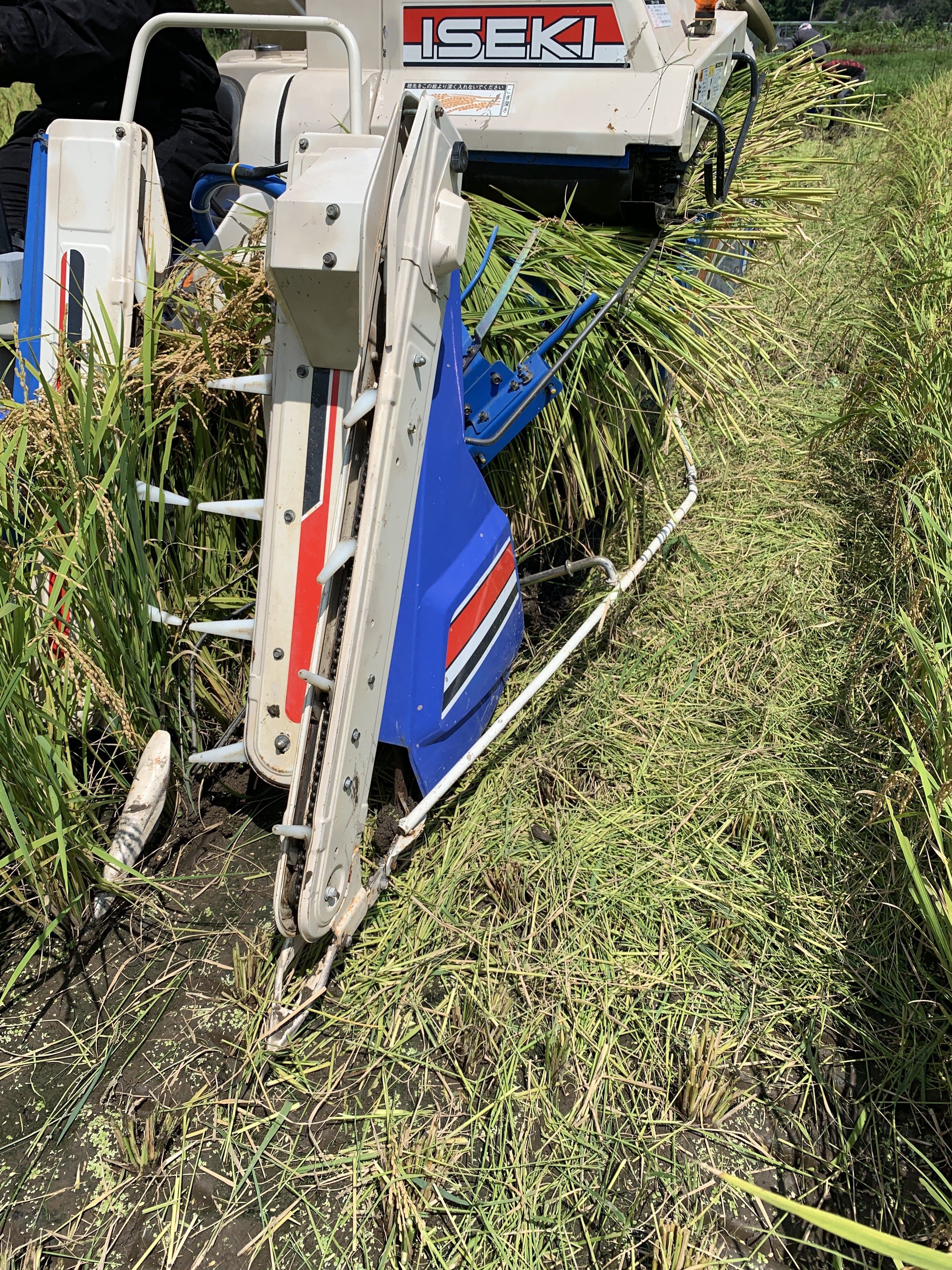 来週から雨予報のため、稲も成熟し、水もだいぶ引いてきたので本日稲刈りを決行しました!