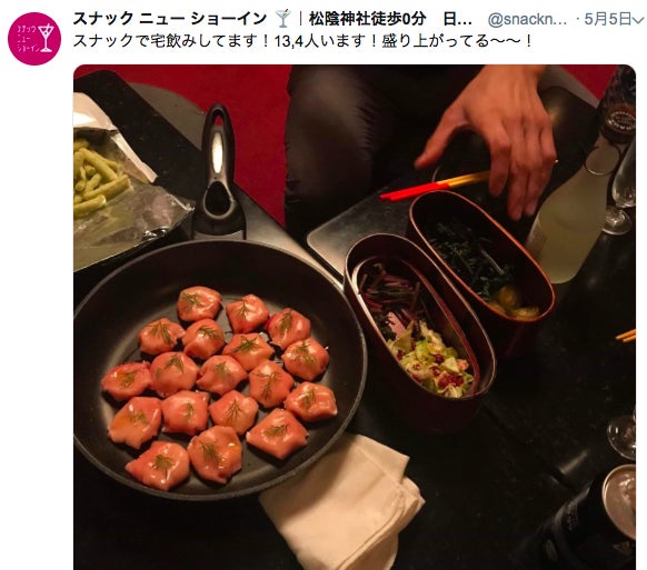 この間、スナック内で急遽宅飲みしました。Twitterでの呼びかけで最終的に15,6名位のご参加だったのですが、家で飲むのとはまた違う楽しさがありました。